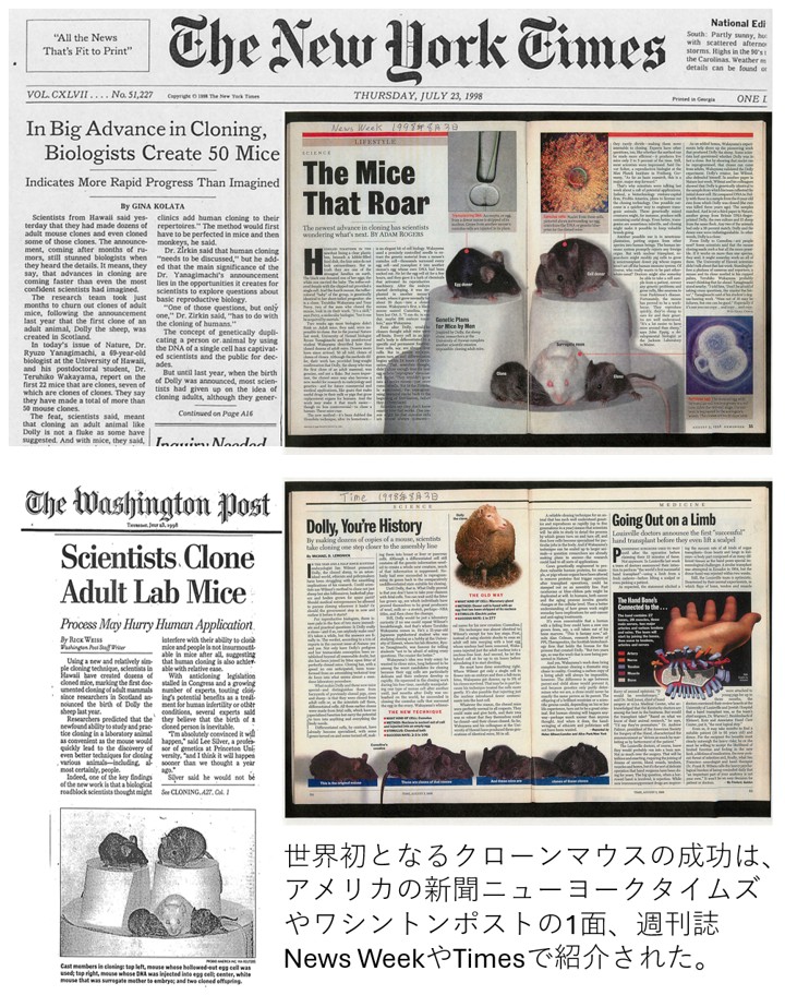 当センターを運営している教職員は若山研も兼務しているため、若山研の情報はすべて発生工学研究センターのHPで紹介しております。ぜひ発生工学研究センターのHPでクローンや宇宙生殖研究、遺伝資源の宇宙保存のページをご覧ください。